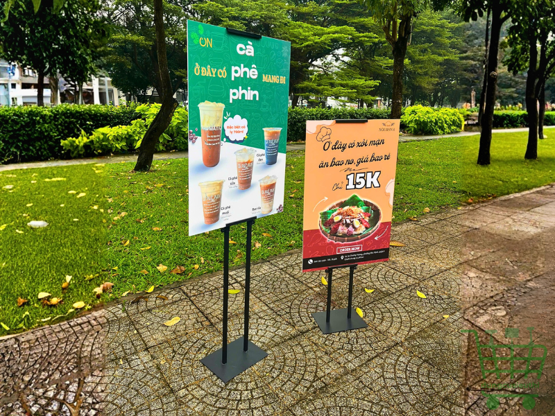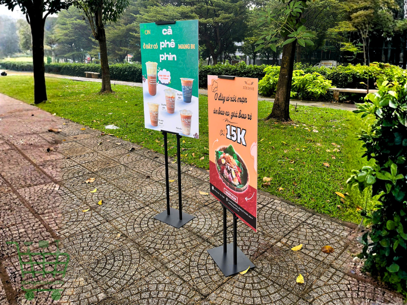 Loại kệ này phù hợp với việc trưng bày poster, bảng giới thiệu hoặc tranh quảng cáo đặt sát tường.