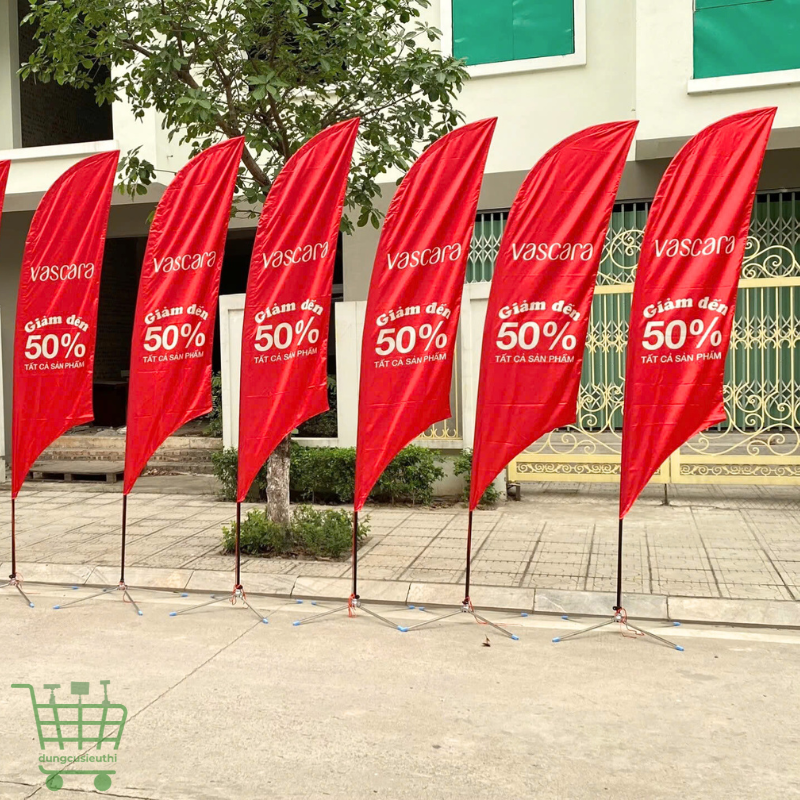 Cờ bãi biển, cờ phướn quảng cáo là lựa chọn lý tưởng cho các chiến dịch truyền thông ngoài trời cần tăng nhận diện thương hiệu và thu hút khách hàng từ xa. Nhờ chuyển động mềm mại theo gió và thiết kế nổi bật, sản phẩm mang lại hiệu ứng thị giác mạnh mẽ, góp phần làm nổi bật hình ảnh thương hiệu trong mọi sự kiện, hội chợ hay khu vực trưng bày sản phẩm.