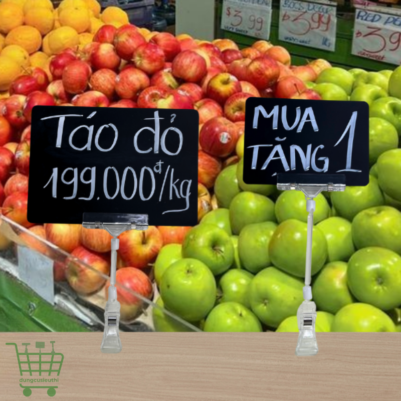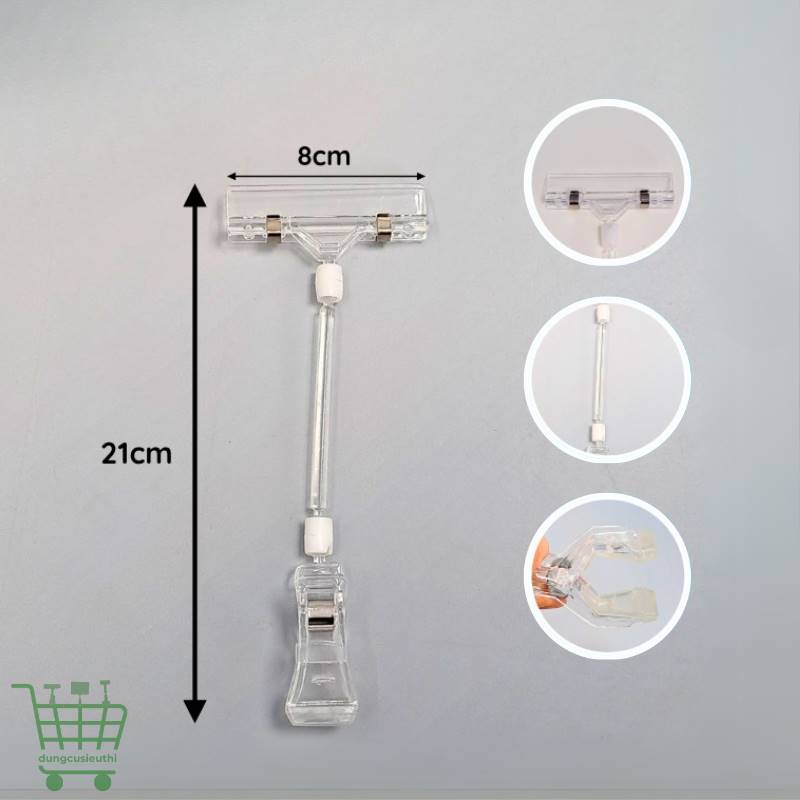 Kẹp được làm từ nhựa cao cấp, bền bỉ và chắc chắn, chịu lực tốt, ít bị biến dạng khi sử dụng lâu dài. Chất liệu trong suốt mang lại cảm giác tinh tế, dễ phối hợp với mọi không gian trưng bày và giúp nội dung hiển thị trở nên nổi bật hơn. Phần ngàm kẹp chắc chắn, dễ mở và giữ cố định bảng giá, thẻ khuyến mãi hay giấy quảng cáo, đảm bảo thông tin luôn được hiển thị ổn định.