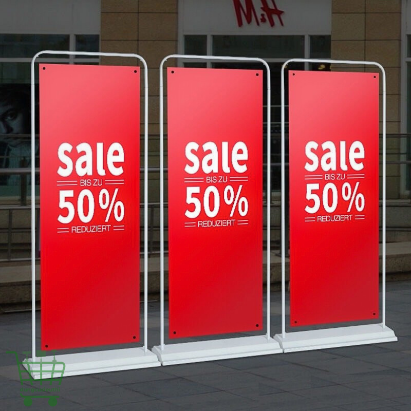 Kích thước tiêu chuẩn: 0.6 × 1.6m và 0.8 × 1.8m – phù hợp với hầu hết kích thước poster quảng cáo thông dụng.
