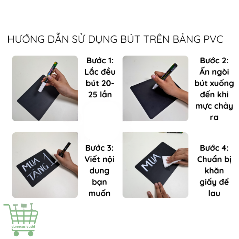 Sản phẩm được làm từ nhựa PVC đen cao cấp, có độ bền cao, chống thấm nước và chịu được môi trường ẩm ướt. Bề mặt bảng nhẵn bóng, dễ ghi và dễ xóa, thuận tiện cho việc cập nhật nội dung thường xuyên. Chất liệu PVC dày dặn, không bị cong vênh hay phai màu sau thời gian dài sử dụng, giúp tiết kiệm chi phí và thân thiện với môi trường nhờ khả năng tái sử dụng nhiều lần.
