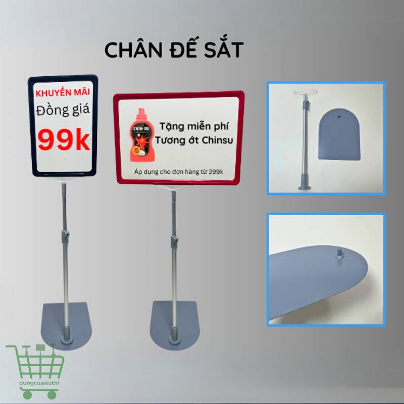 Chân đế sắt gắn khung bảng giá – Giải pháp trưng bày chuyên nghiệp, chắc chắn và tiện lợi