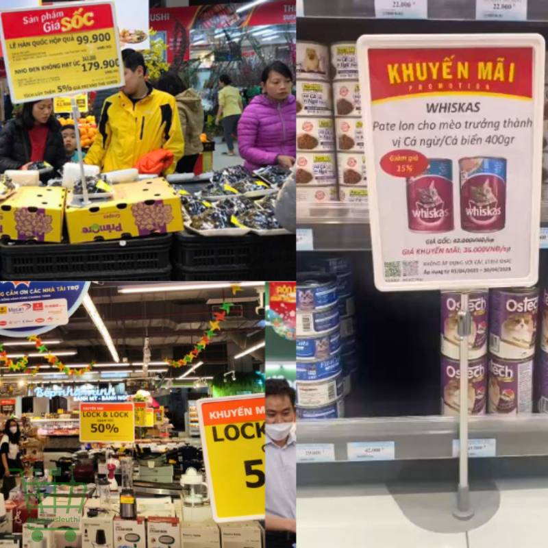Nhờ thiết kế tiện lợi, chân đế sắt gắn khung bảng giá có thể ứng dụng linh hoạt tại các quầy trưng bày, siêu thị, cửa hàng tiện lợi, triển lãm hay sự kiện, giúp cố định khung bảng giá một cách chắc chắn, đồng thời cho phép nhân viên dễ dàng thay đổi thông tin khi cập nhật giá hoặc chương trình khuyến mãi.
