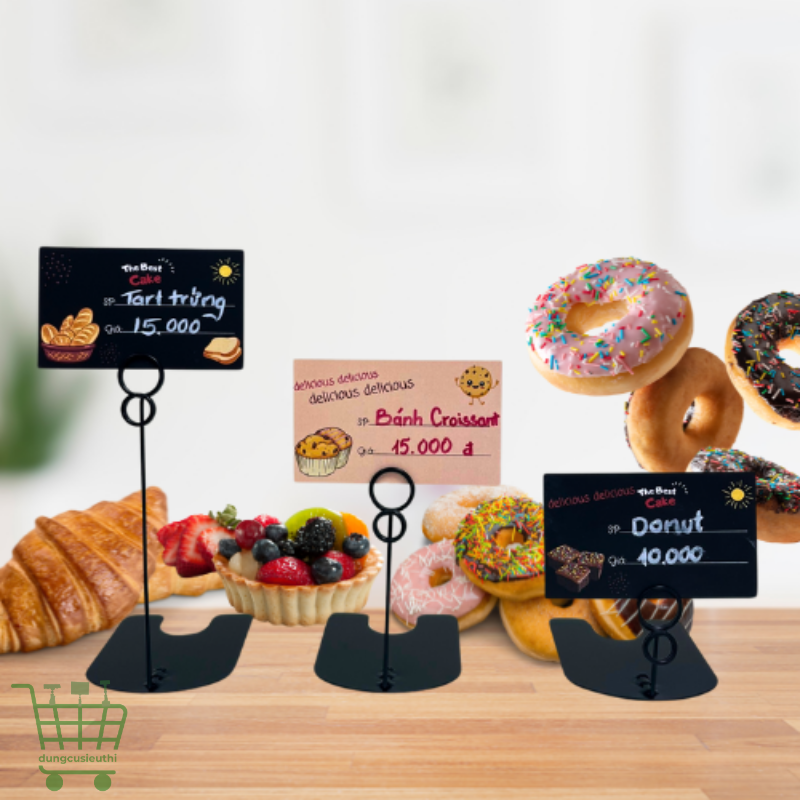 Kẹp inox số 8 đen – Giải pháp trưng bày thẻ giá và quảng cáo để bàn sang trọng và bền bỉ