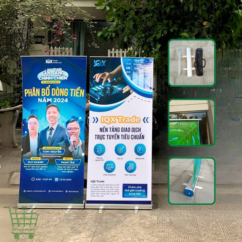 Khung standee cuốn nhôm cao cấp được chế tạo từ hộp cuốn bằng nhôm bền chắc, kết hợp thanh chống bằng sắt sơn tĩnh điện cho khả năng chịu lực tốt và độ ổn định cao. Sản phẩm đi kèm túi đựng chuyên dụng, giúp bảo quản và di chuyển thuận tiện. Kích thước tiêu chuẩn gồm 0.6×1.6m và 0.8×2m, phù hợp với đa dạng mẫu in quảng cáo hiện nay.