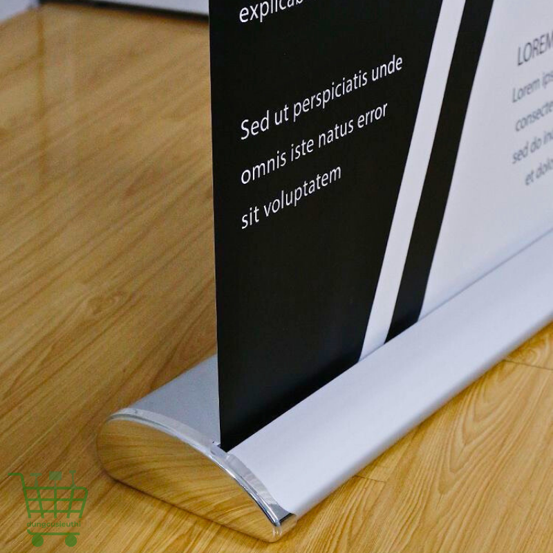 Standee cuốn nhựa hào hoa, hay còn gọi là giá cuốn nhựa đế to một mặt, là lựa chọn hoàn hảo cho doanh nghiệp, cửa hàng hoặc đơn vị tổ chức sự kiện muốn trưng bày banner, hình ảnh hay thông tin quảng cáo một cách chuyên nghiệp, tinh tế và hiệu quả. Với thiết kế sang trọng, dễ sử dụng và độ bền cao, sản phẩm giúp nâng tầm hình ảnh thương hiệu và tạo điểm nhấn nổi bật cho mọi không gian trưng bày.