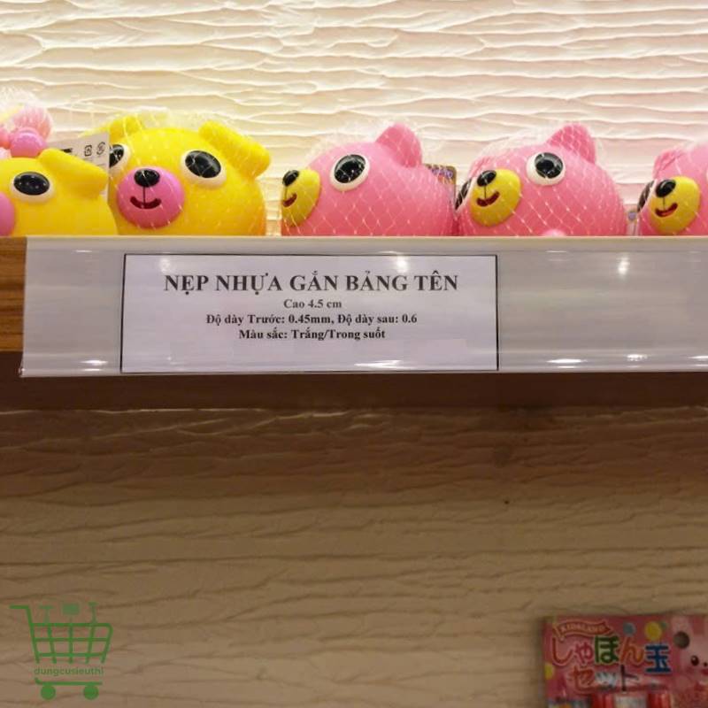 Được sản xuất từ nhựa PVC cao cấp, thanh nẹp có độ dẻo và độ bền cao, chịu được va chạm nhẹ cũng như điều kiện môi trường trong siêu thị. Bề mặt nẹp mịn, dễ lau chùi, không bám bụi và giữ được độ trong suốt sau thời gian dài sử dụng. Keo dán hai mặt siêu bám chắc giúp cố định nẹp ổn định trên nhiều loại bề mặt khác nhau mà không cần dụng cụ hỗ trợ.