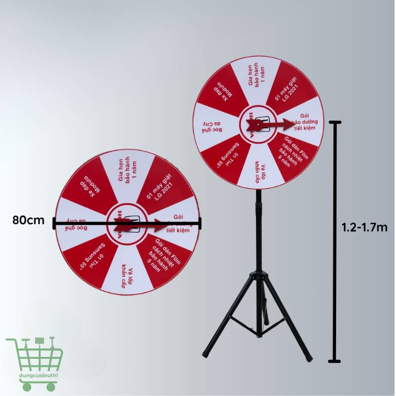 Vòng quay trúng thưởng size đại là lựa chọn hoàn hảo cho các chương trình khuyến mãi, hội chợ, lễ khai trương hay sự kiện doanh nghiệp. Với thiết kế nổi bật, vận hành êm ái và kích thước ấn tượng, sản phẩm giúp khuấy động không khí, tăng tương tác và thu hút sự chú ý của khách hàng.