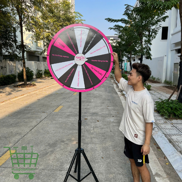 Dù được sử dụng trong hội chợ, sự kiện ngoài trời, chương trình khuyến mãi, hoặc mini game doanh nghiệp, vòng quay trúng thưởng size đại vẫn nổi bật nhờ thiết kế bắt mắt, âm thanh “click” nhẹ nhàng mỗi lần xoay tạo cảm giác hồi hộp và hứng khởi. Đây không chỉ là công cụ khuấy động không khí mà còn là phương tiện marketing hiệu quả, giúp thương hiệu tăng tương tác, ghi dấu ấn trong lòng khách hàng.